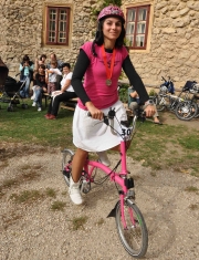 Brompton mne na mých cestách doprovází už více než rok. Na letošní mistrovství ČR na Janův hrad u Lednice jsem na něm přijela od vlaku z Břeclavi. Ještě večer před tím, jsem se ale procházela pod Eifelovkou a ráno před tím na něm jela podél Loiry v Bretani. Kdyby nebyl tak skladný, nejspíš bych se na letošní mistrovství ČR vůbec nedostala. Vše jsem zvládla jen díky tomu, že můj malý bílý přítel ve složeném stavu zabírá opravdu málo místa a díky rozměrům běžného zavazadla s ním mohu do jakéhokoli vlaku včetně těch, kam se s kolem běžně nesmí, nebo je nutná předchozí rezervace. Tyto nesporné výhody objevuje stále více lidí a tak se i česká rodina majitelů těchto úžasných skládaček pomalu rozrůstá. V Plzni jsem zahlédla krom toho svého zatím jen jednoho cyklistu. Jel také na bílém stroji. Zda tu byl jen na návštěvě, či si Bromíka pořídil jako stálý rezident, jsem ale bohužel ještě nezjisitla.