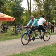 Na své si na Janově hradě přišli všichni. Někteří zkoušeli netradiční kola, kde musíte šlapat pozpátku, nebo se na ně sotva vejdete. Právě jedno takové minikolečko si vyzkoušel jediný zahraniční účastník Ross Hawkins. Jak se ukázalo, šlo mu i házení pláštěm kola na sedlovku zapíchnutou v trávě.