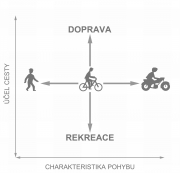 Pro vytváření efektivní cyklistické infrastruktury je důležité brát ohled na to, jakou funkci tato infrastruktura bude prioritně plnit - tedy zda rekreační, dopravní či její kombinaci. Pokud jezdíte na kole jen rekreačně, snažíte se totiž komunikacím s provozem vyhýbat a nějaké to prodloužení cesty vám moc nevadí. Pokud ale používáte kolo jako dopravní prostředek třeba na cestu do práce, do školy, nebo na nákup, vkládá se do vaší úvahy i časové hledisko a tedy i výsledná efektivita dopravy jako u jiných dopravních prostředků (komfort jízdy, parkování atd.). Hledáte (stejně, jako kdybyste jeli jiným dopravním prostředkem) cestu, kterou se z místa A do místa B dostanete co nejrychleji.