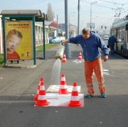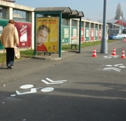 přibližně 6 metrů širokém) chodníku piktogramy upozorní jak chodce čekající na