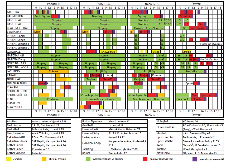 | Zahajovací ceremoniál | Ne 14/6/2015 od 19h | Home Monitoring Aréna (Zimní stadion) |
