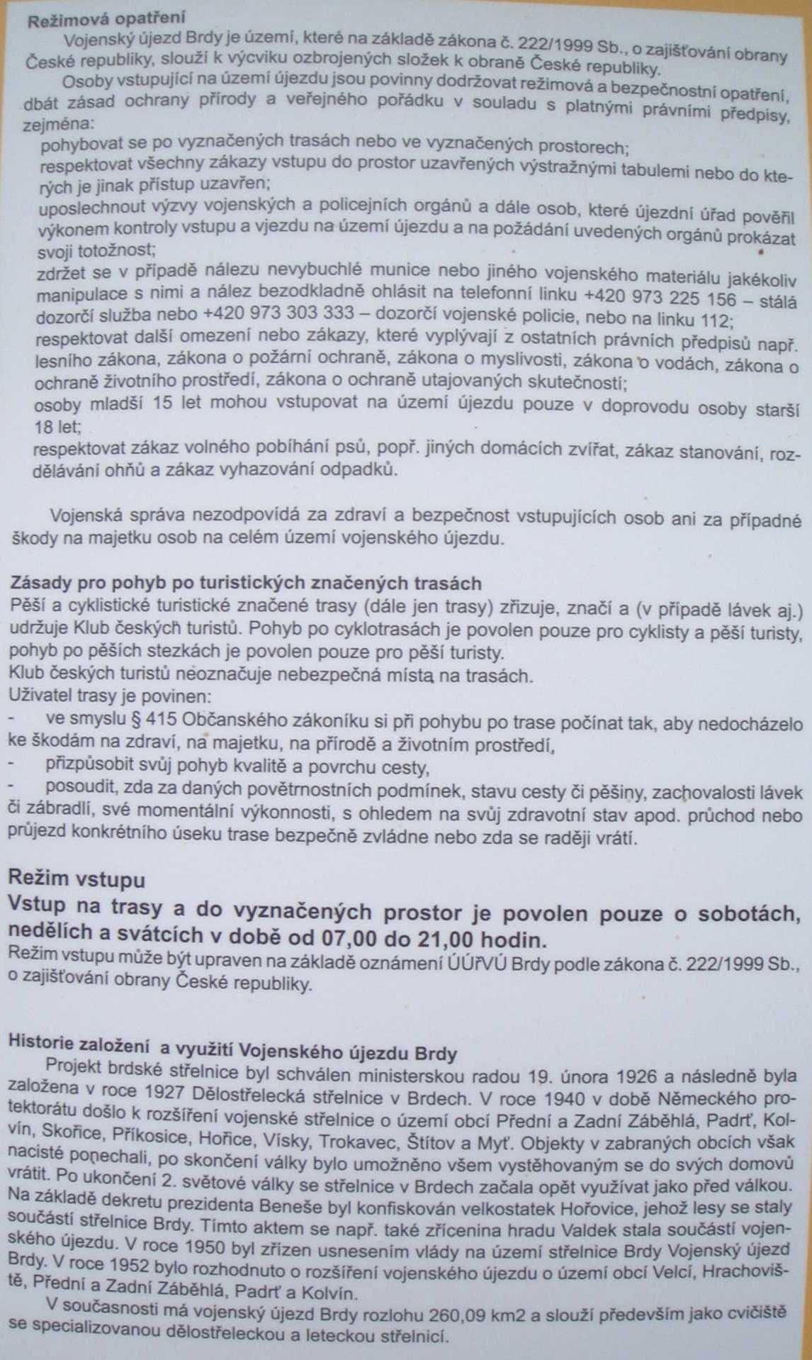 Pravidla vstupu do VVP Brdy (246.62 kB)Mapa vedení tras ve VVP Brdy (997.87 kB)