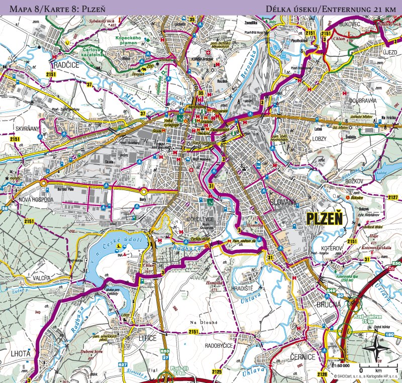 Letos v zimě bylo vydáno již druhé revidované vydání průvodce po mezinárodní cyklotrase Praha - Plzeň - Regensburg. V brožuře formátu cca 10 x 20 cm najdete mapové výřezy i praktické informace s kontakty na ubytování, infocentra či zajímavá místa k navštívení. Části trasy vyznačené v mapě v tomto průvodci najdete v příloze. Brožura je k dispozici s českým i německým textem. Vydal ji Plzeňský kraj a je k dispozici je v infocentru města Plzně a na Úřadě Plzeňského kraje.