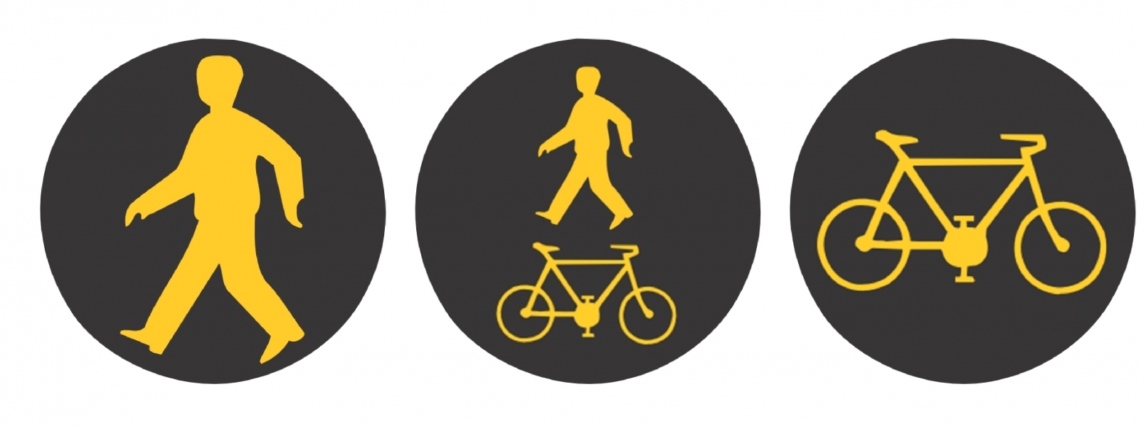 Signál žlutého světla ve tvaru chodce před přechodem pro chodce a přejezdem pro cyklisty bude nově možné doplnit také o upozornění na pohyb cyklistů. Návěstidlo vlevo je určeno pro chodce a cyklisty, návěstidlo vpravo upozorňuje řidiče. (Strakonice)